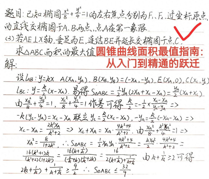 在高考数学的几何领土中,圆锥弧线持久占据着中枢性位。从椭圆到双弧线、抛物线,这些充满好意思感的弧线不仅是领路几何的基础,更因触及距离、面积、极值等复杂干系,成为分离考生想维端倪的要津题型。其中,"面积最值问题"算作高频考点,条目考生在代数运算与几何直不雅之间架起桥梁,体现着数学想维的深度会通。更多好题滴滴领取电子版