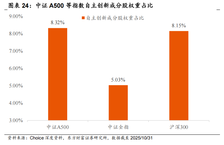 中证A500指数不仅隐敝广、权重散、行业作风平衡,并体现新质坐褥力特征,其在电子、电力诞生、医药、国防军工等新兴产业相较沪深300指数显贵超配,在金融、主要奢华等传统行业权重占比显贵缩小,省略更蚁合地反应经济增长新动能的发展态势。中证A500指数自主编削身分股占比权重约8.32%,远高于中证全指的5.03%。